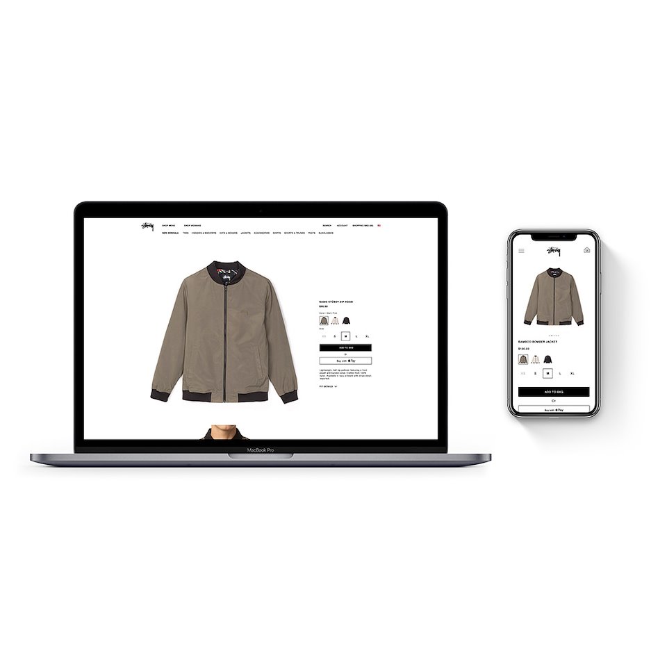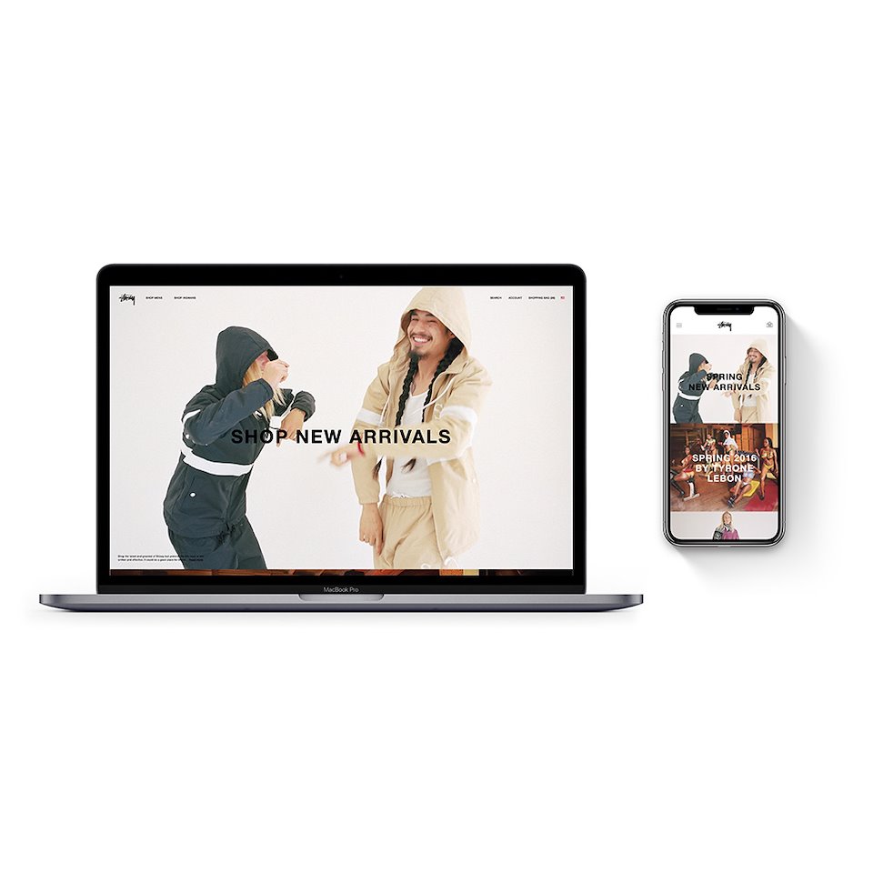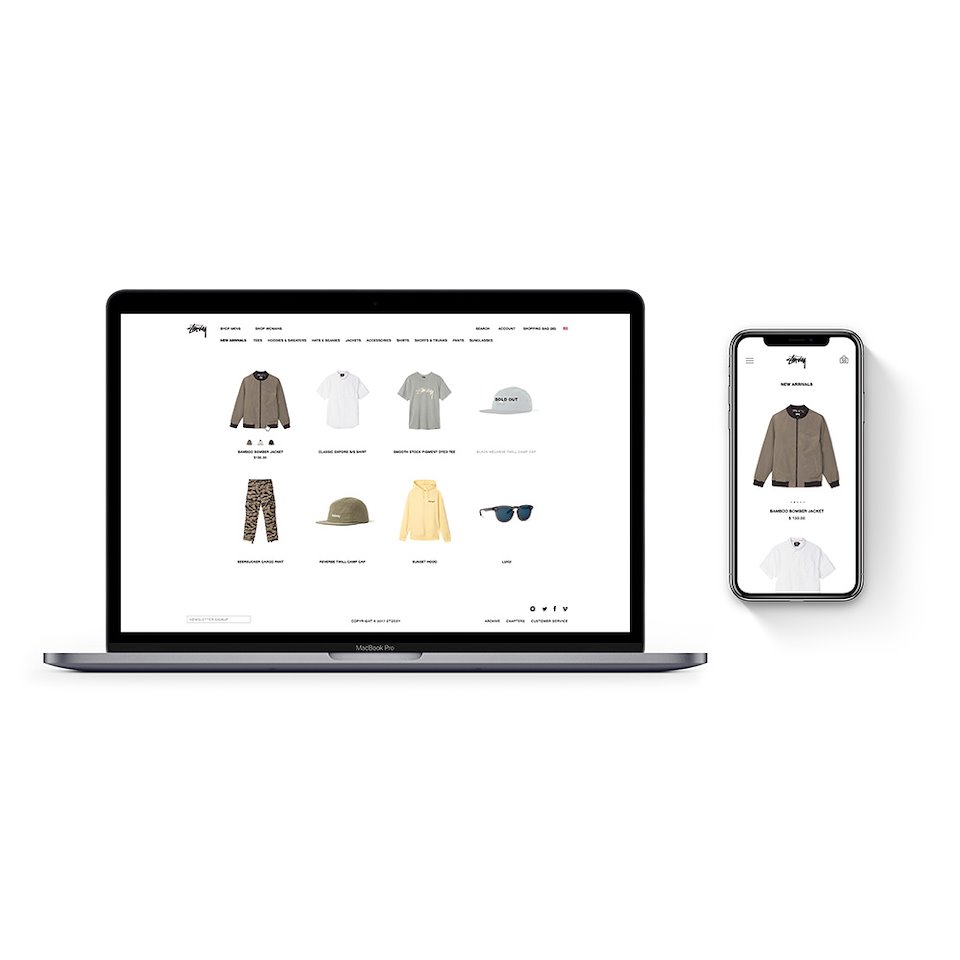 This is the redesign of the Stussy website. We wanted to clean up the design while also making the shopping experience smoother and more enjoyable. We used a clean white background so that the apparel would stand out more since in the end that is why people are going to the site. The next few images are of the shopping experience of the category page and the product page for both desktop and mobile.