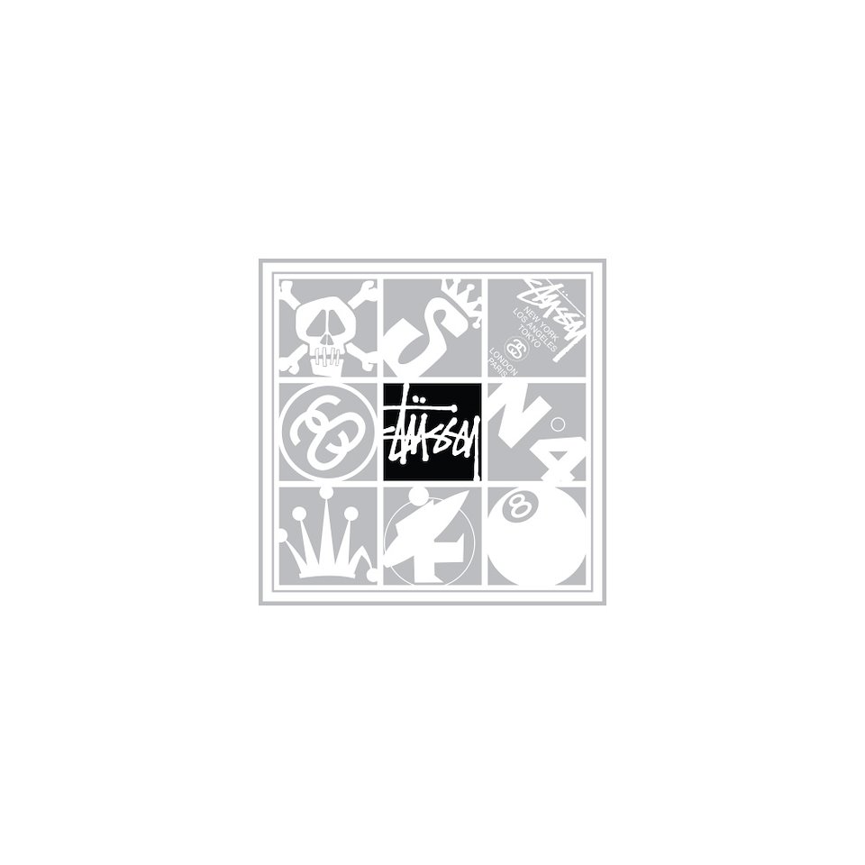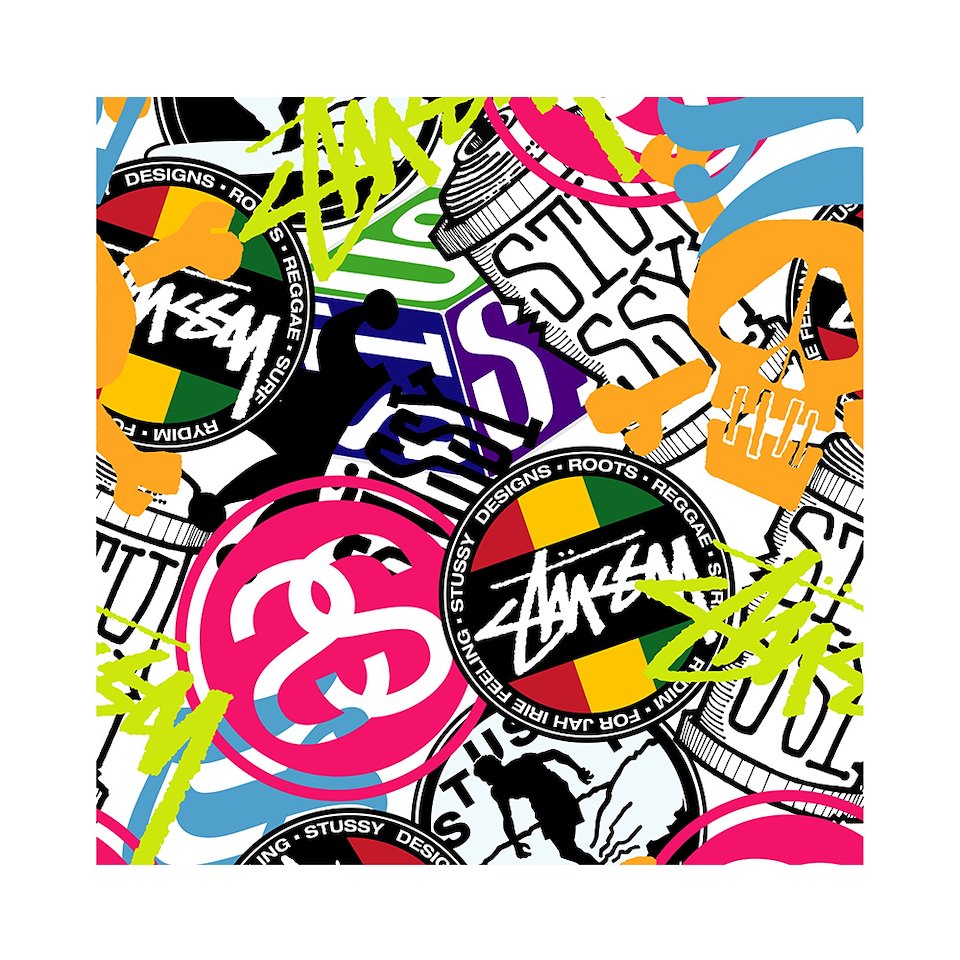 This is a repeat pattern that was designed to look like over laid stickers. It was designed using some of Stussy’s most iconic graphics.