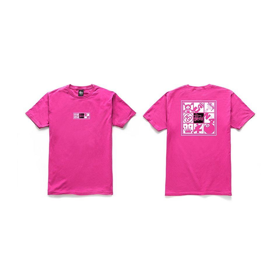 Tee shirt design using Stussy’s iconic logos from over the years.
